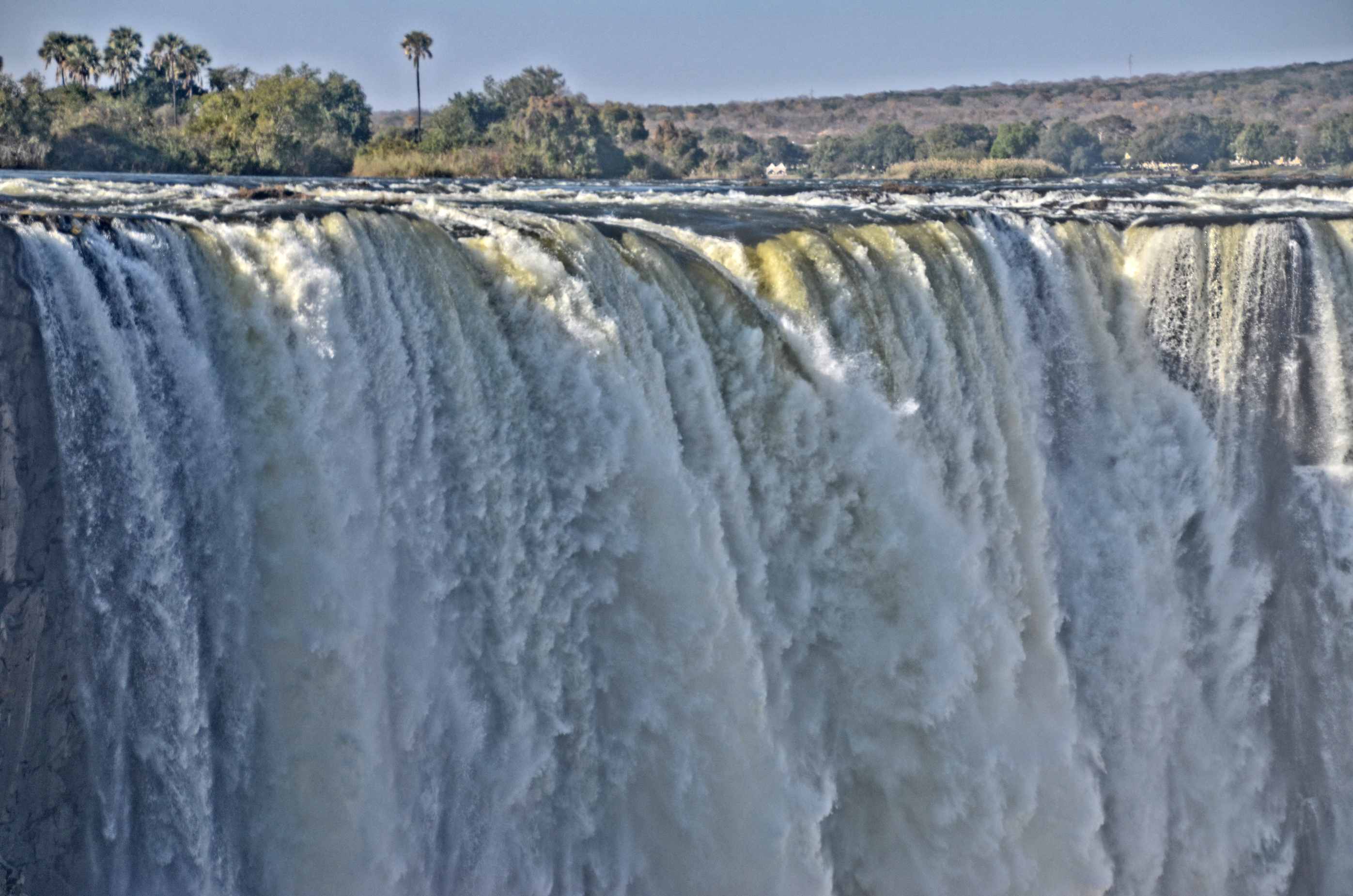 Ein besonderes Naturspektakel bieten die Viktoriafälle, Auf einer Breite von 1700 m fällt der grosse Zambezi-Strom mehr als 110 m in die Tiefe einer Basaltschlucht.